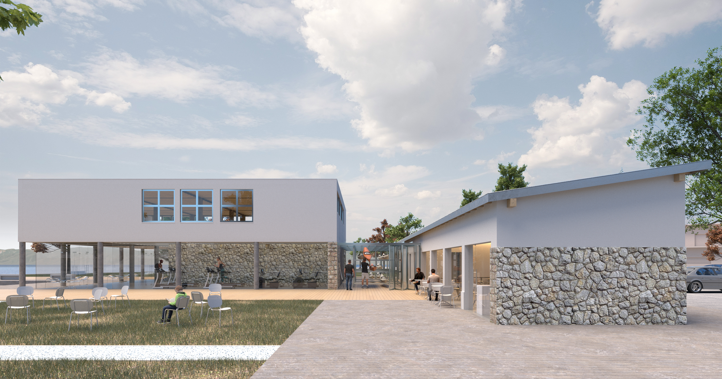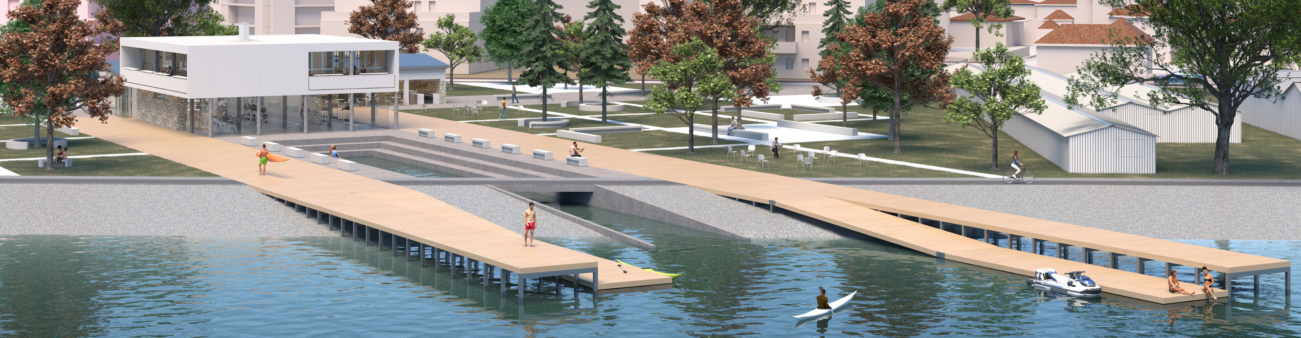 The new programs adapt to the existing structures ensuring accessibility and maintaining visual contact with the lake.